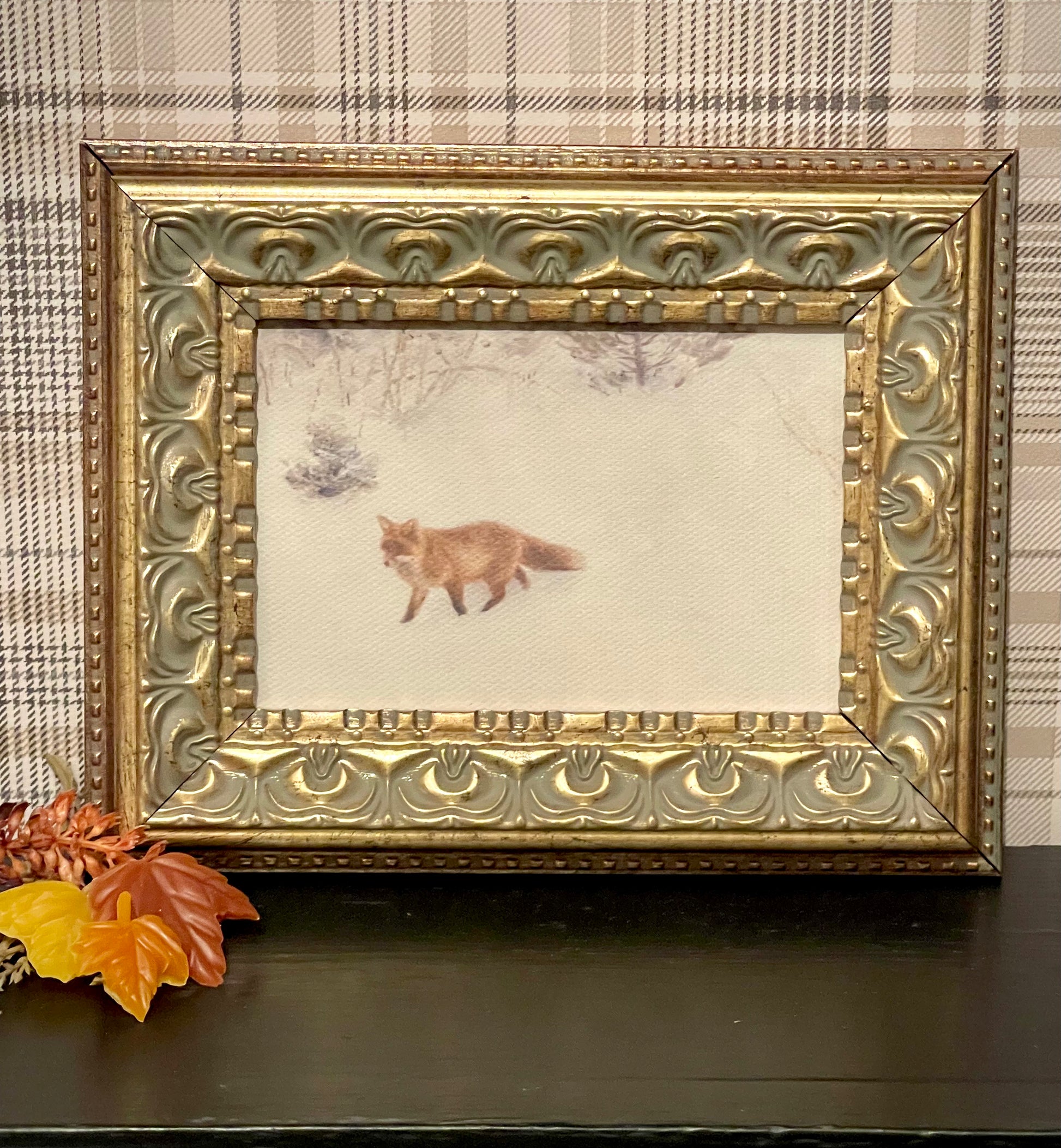 Fox in Winter - Framed Antique Art (7x5)
